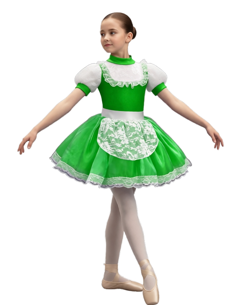 COSTUME COMPOSTO DA GONNA E CORPETTO IN LYCRA CON MERLETTO, MANICHE A PALLONCINO